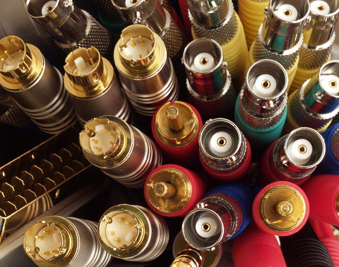 Disponemos de cables coaxiales, HDMI, conectores de alimentación, conectores de audio/video, conectores BNC, conectores RF, descargadores de sobretensión, conectores microondas, conectores circulares DIN y conectores circulares M12/M8/M5.